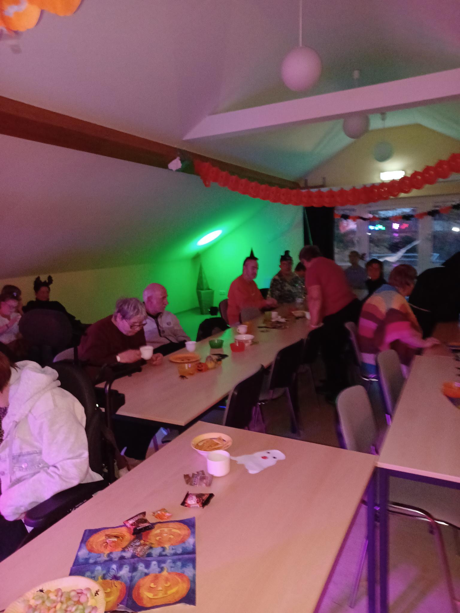 Am Freitag, den 31.10.2025 fand Freizeitraum der Wohnstätte „Schöne Aussicht“ eine Hallowenndiscoparty, mit DJ Paul und einem schaurig leckeren Gruselbuffet , statt. Ganz viele Tanzwütige und ehrenamtliche Helfer danken, dem DJ Paul, der Ehrenamtsstiftung Thüringen, dem Inklusionsstammtisch Meiningen, der Ehrenamtsagentur „InkluWIR“ und dem tollen Team der Wohnstätte für eine unvergessliche Veranstaltung.